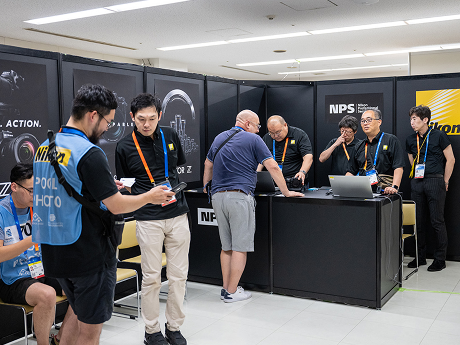 Excitement fills the air at the 2023 World Aquatics Championships in Fukuoka, Japan, where aquatic athletes from around the world perform at their best, stands packed with spectators cheering for their favorite swimmers, and professional photographers from all around the world focus their attention on capturing each decisive moment. Backstage, away from all the dynamic action, you’ll find the Nikon Professional Services (NPS) depot, the dedicated on-site professional service center where photographers file in and out, receiving the kind of assistance and advice that they need so that they are fully prepared to capture the perfect shot. Let’s take an inside look at how NPS operates their depot and hear first-hand accounts from staff members and depot visitors.