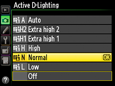 Note : Noise may appear when Active D-Lighting is used at high ISO sensitivities.
