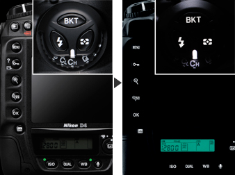 When shooting menu bank selection is assigned to the Fn or Pv button using the Press + command dials option for Custom Setting f3 (Assign Fn button) or f4 (Assign preview button), menu banks can be selected by pressing the button and rotating a command dial.
