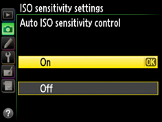 When On is selected for ISO sensitivity settings> Auto ISO sensitivity control in the shooting menu, the camera automatically adjusts ISO sensitivity if optimal exposure can not be achieved at the value selected by the user.