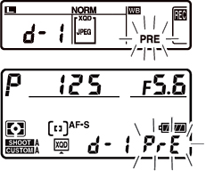 Before the indicators stop flashing, frame the reference object so that it fills the viewfinder and press the shutter-release button all the way down. The camera will measure a value for white balance and store it in the selected preset.