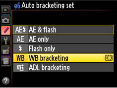 Select WB bracketing for Custom Setting e6 (Auto bracketing set).