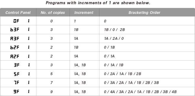 Bracketing can also be cancelled by performing a two-button reset, although in this case, the bracketing program will not be restored the next time bracketing is activated.