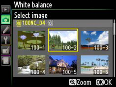 Follow the steps below to copy a value for white balance from an existing photograph to a selected preset.