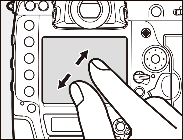 •Place two fingers on the monitor and stretch or pinch to zoom in or out. To switch to a thumbnail view, zoom out when the image is displayed full frame.