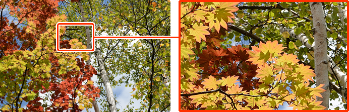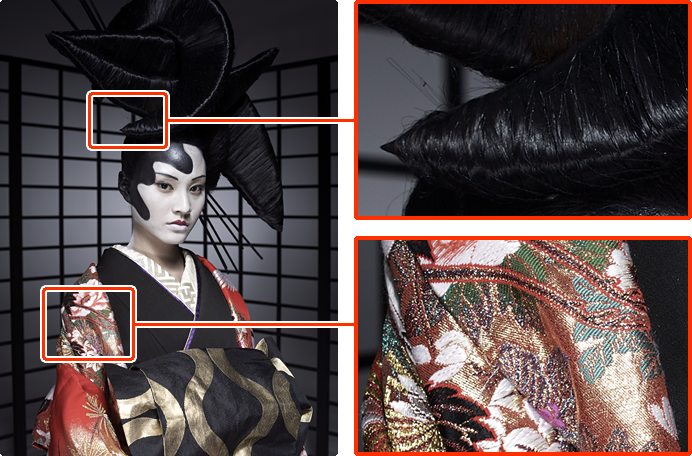 – (Below): With the D800E, the effects of the low-pass filter is removed, and the light is received by the image sensor at a single point, achieving higher-resolution images with minimal blur.