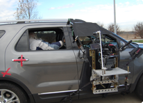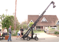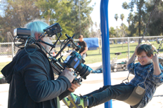 The challenge of using a moving camera for cinematography is one of the most interesting aspects of moviemaking. To accomplish this, the DP can draw on many types of specialized equipment. Dollies, for example, allow the camera to move horizontally as well as vertically to follow the scene as it unfolds. One scene in "Through The Lens" photographed the boy through a birdcage, and another had the camera following the boy and his father in a supermarket. The opening scene used a telescoping crane called a Technocrane to shoot the young girl delivering newspapers from high above. A camera mounted on a specially adapted Porsche Cayenne was also used to shoot this film. The camera was mounted to the Gemini crane affixed to the roof of the car with a gyro-stabilized three-axis Libra mount to photograph the school bus and other driving scenes. Other scenes shot inside the car used special mounts including one nicknamed a 'hostess tray' to affix the camera to the moving car.