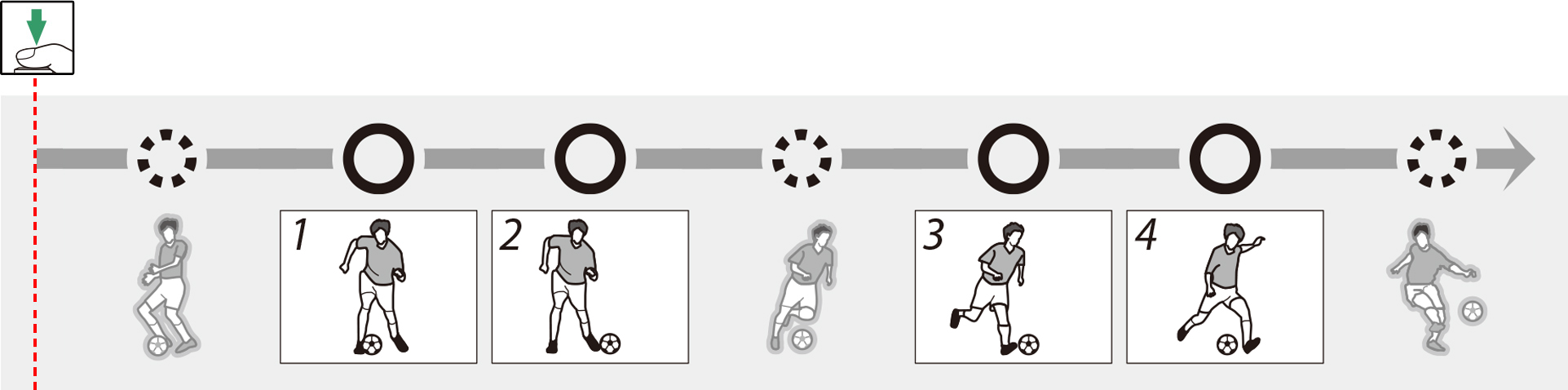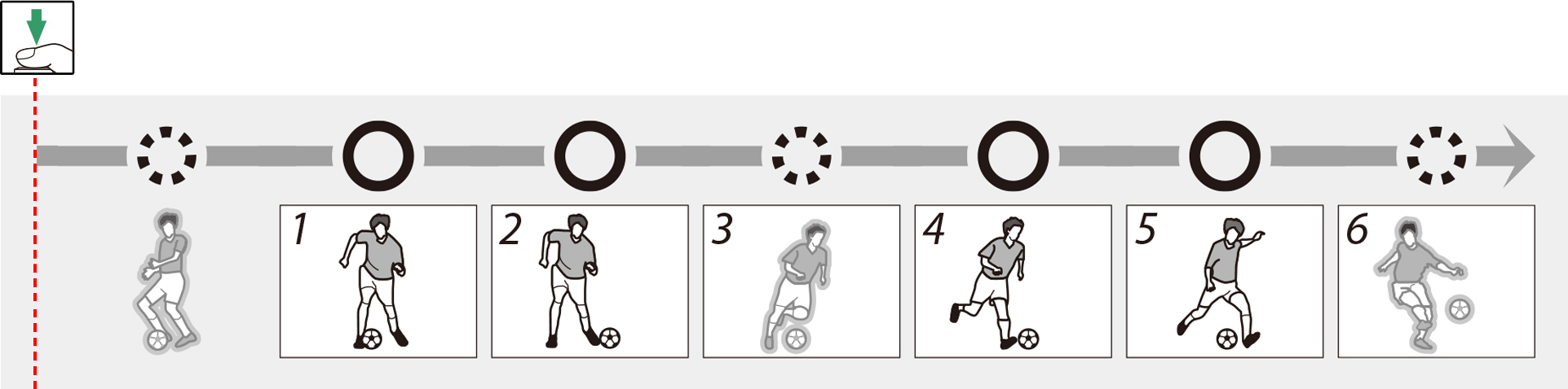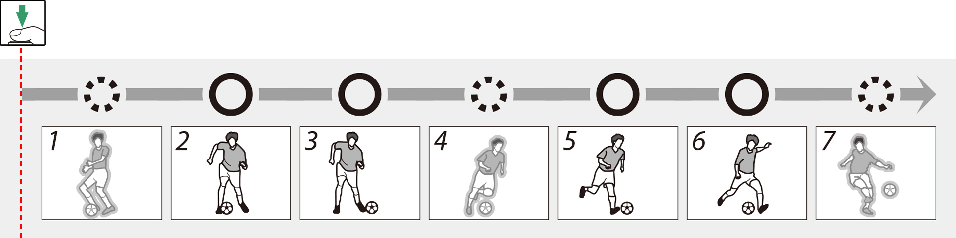 In burst mode, priority is given to focus for the first frame and to release for later frames, ensuring that the first frame is in focus and that no subsequent frames are missed. Frame rates do not slow.